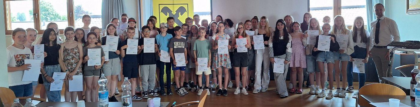Am 12.06.2025 war es dann soweit. Die Preisverleihung durch unsere örtliche Raiffeisenbank Kössen-Schwendt, fand im RAIBA-Saal statt. Die zahlreichen Besucher, wie Eltern und Freunde, bezeugen das Interesse für kreatives Gestalten. Vielen Dank unserer RAIBA mit ihren JugendbetreuerInnen für die angenehme Moderation und Gestaltung des Nachmittags, inklusive Snacks und Softdrinks, und natürlich für die Preise in Form von Kino-Gutscheinen, inklusive Popcorn.