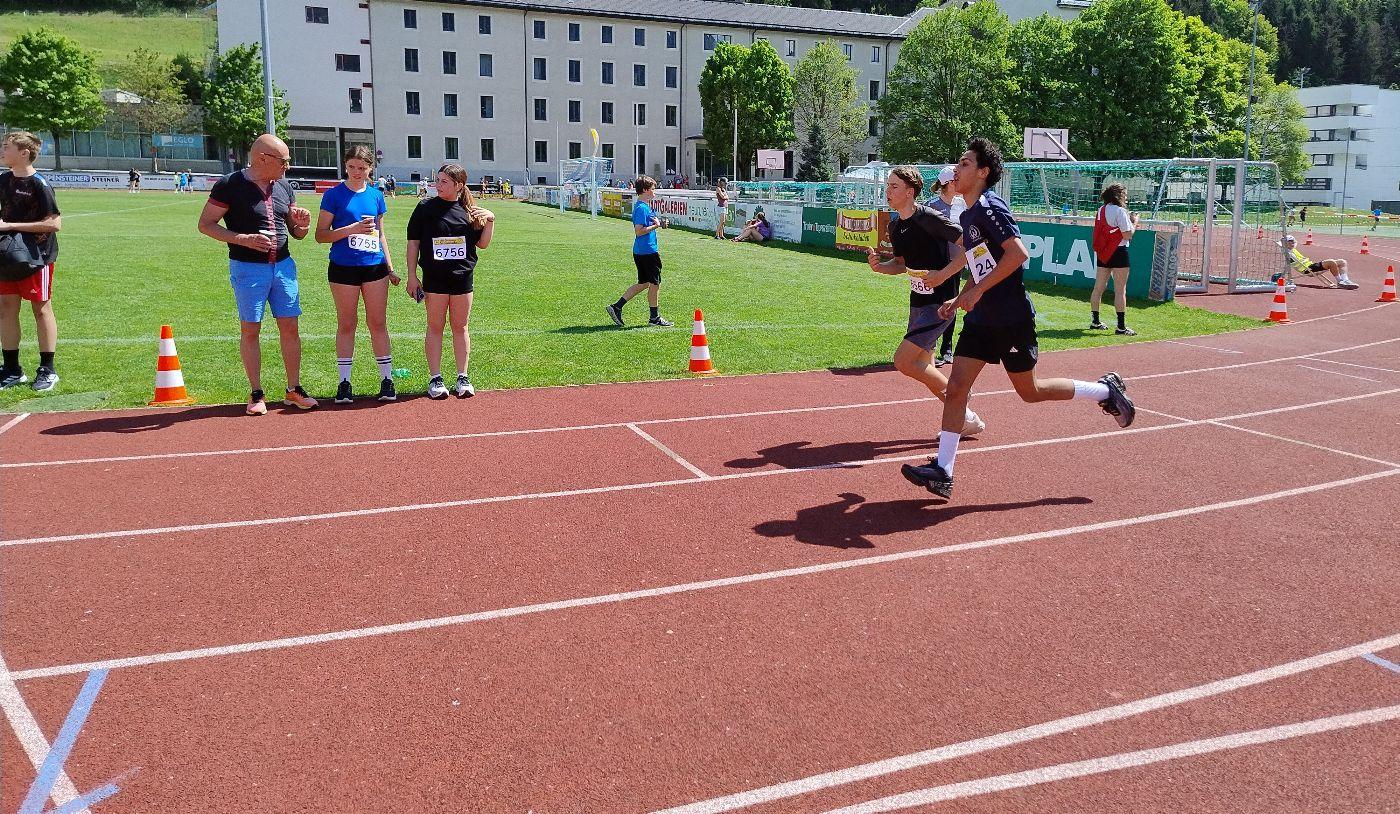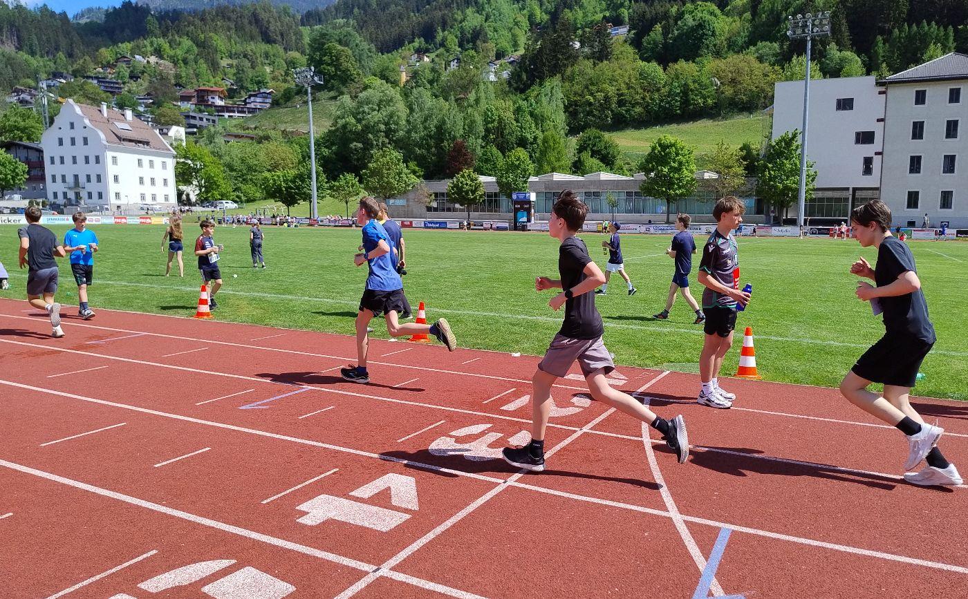 An “amazing event“, bestens organisiert von unserem Fachlehrer Christian Naschberger, selbst begeisterter und erfolgreicher Sportler. Trotz Temperaturen um die 26 Grad gelang es unseren 15 Läuferinnen und Läufern gute Ergebnisse zu erzielen, und zwar aus einem Konkurrenzfeld, gespickt von „Profis“ aus Sport-Mittelschulen und Sport-Gymnasien aus ganz Tirol! Sieben qualifizierten sich für das Bundesfinale in Maria Enzersdorf in Niederösterreich am 11. Juni 2025. Isabel Beikircher 4C und Maximilian Mühlberger 4A konnten sogar einen Pokal mit nach Hause bringen.