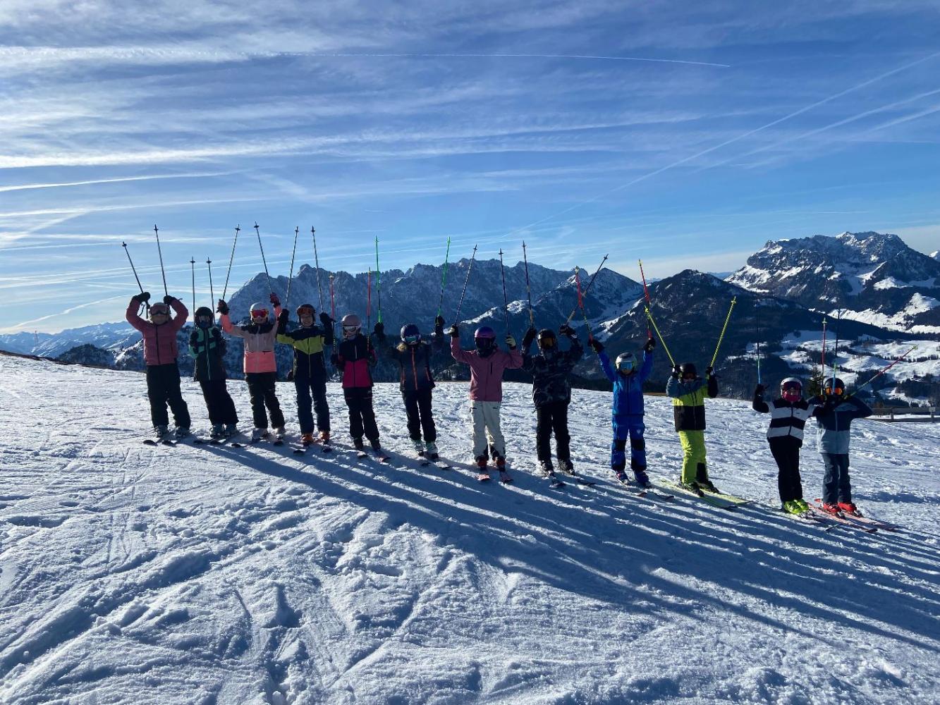Die Skiwoche der 1. Klassen der Mittelschule fand von 14. bis 20. Jänner statt und bot den Schülerinnen und Schülern bei durchgehend sehr schönem Wetter ideale Voraussetzungen für sportliche Erfolge und gemeinsame Erfahrungen. Rund zehn Anfänger:innen wurden in den ersten drei Tagen neben den begleitenden Lehrer:innen von einer eigens engagierten Skilehrerin betreut, die den Kindern mit viel Geduld und fachlicher Kompetenz das Skifahren näherbrachte und rasche Lernfortschritte ermöglichte. Von Mittwoch bis Freitag waren die Gruppen im Skigebiet Hoch Kössen am Unterberg unterwegs, wo die Schüler:innen ihre Technik verbessern, Sicherheit gewinnen und erste längere Abfahrten meistern konnten. Am Montag und Dienstag führte die Skiwoche mit dem Bus von Kössen nach Waidring, wo zwei abwechslungsreiche Skitage im Skigebiet der Steinplatte verbracht wurden, was für viele Kinder ein besonderes Highlight darstellte, da sie dieses Skigebiet zum ersten Mal kennenlernen durften. Neben dem sportlichen Programm trug auch die ausgezeichnete Organisation zum Erfolg der Woche bei, denn die Hütten sorgten zu sehr günstigen Preisen für eine sehr gute und stärkende Verpflegung, sodass alle stets bestens versorgt waren. Die Kombination aus perfektem Wetter, motivierten Kindern, engagierter Betreuung und abwechslungsreichen Skigebieten machte diese Skiwoche zu einem gelungenen schulischen Erlebnis, das nicht nur die sportlichen Fähigkeiten, sondern auch den Zusammenhalt innerhalb der Klassen nachhaltig stärkte.