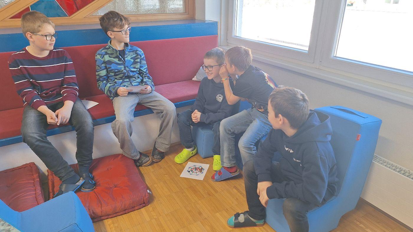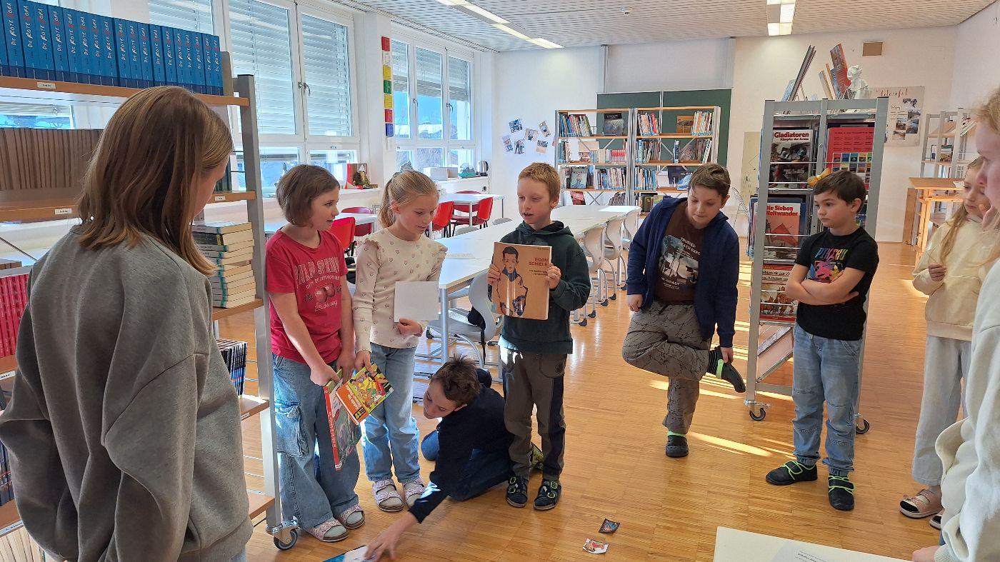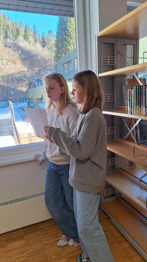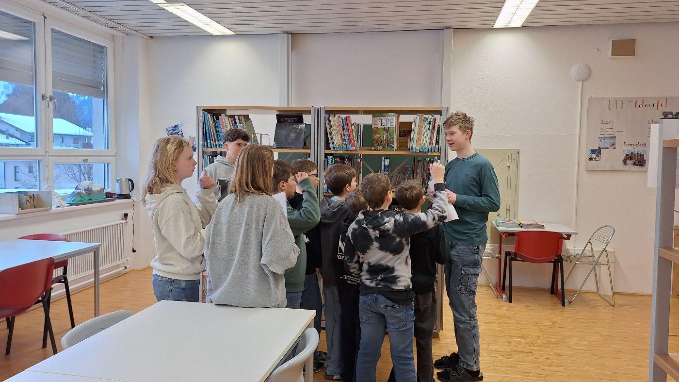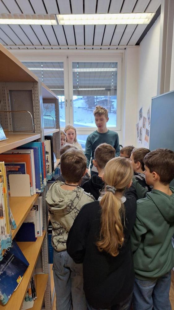 Zu Beginn des 15-minütigen Aufenthalts begrüßte das Bibliotheksteam der Mittelschule die Schüler:innen der Volksschule mit einem Zauberspruch. Im Rahmen einer kurzen Rätselreise wurden die Teilnehmer:innen durch die "Geheimnisse der Regale" geführt. Im Anschluss daran erhielten sie die Möglichkeit, ihre "Spürnasen" einzusetzen und verschiedene Bücher in der Bibliothek zu suchen. Bei der "stillen Post" wollten wir wissen, wie sich verschiedene Buchtitel durch mehrmaliges Weiterflüstern verändern. Verabschieden durften wir unsere Neuen mit einem humorvollen Abschlussgedicht!
