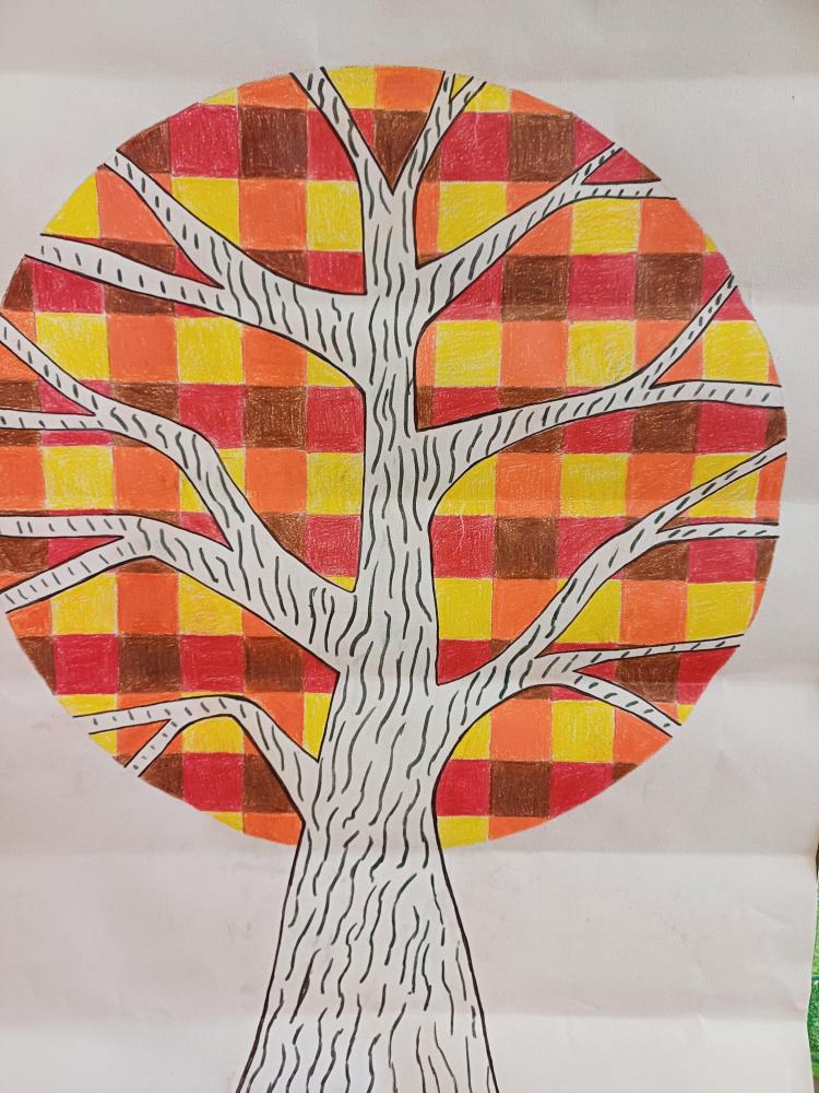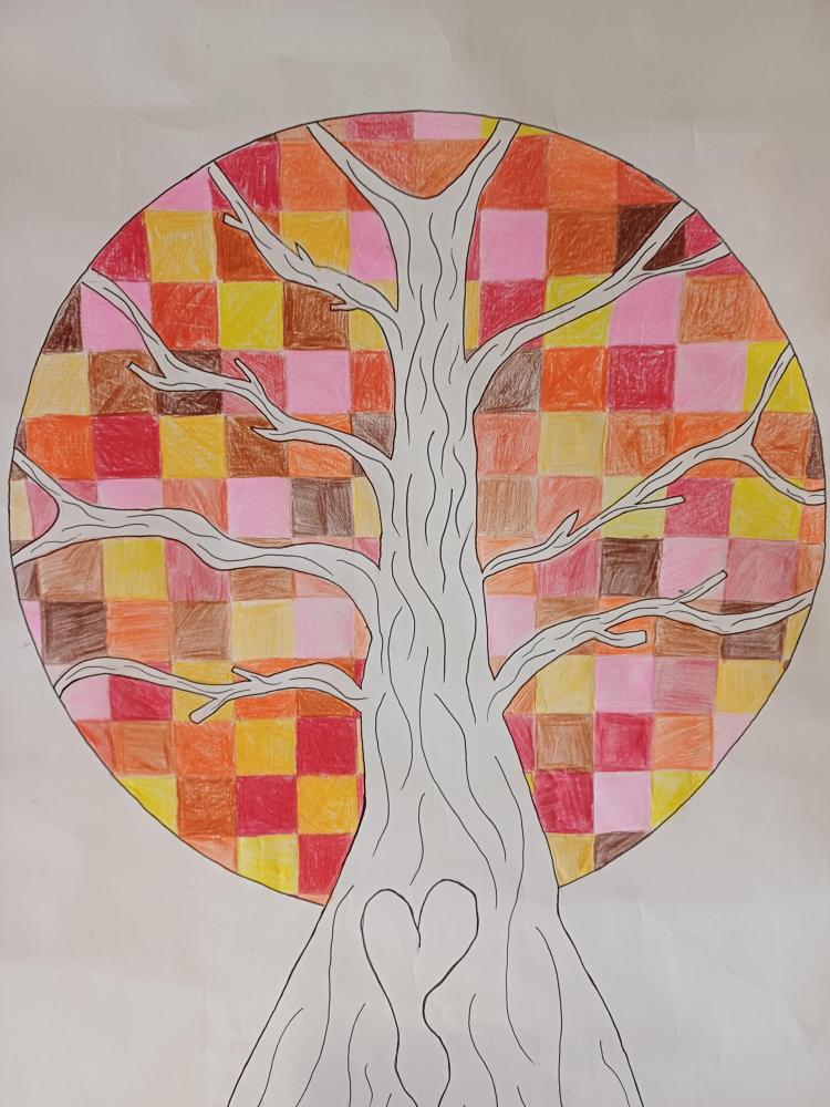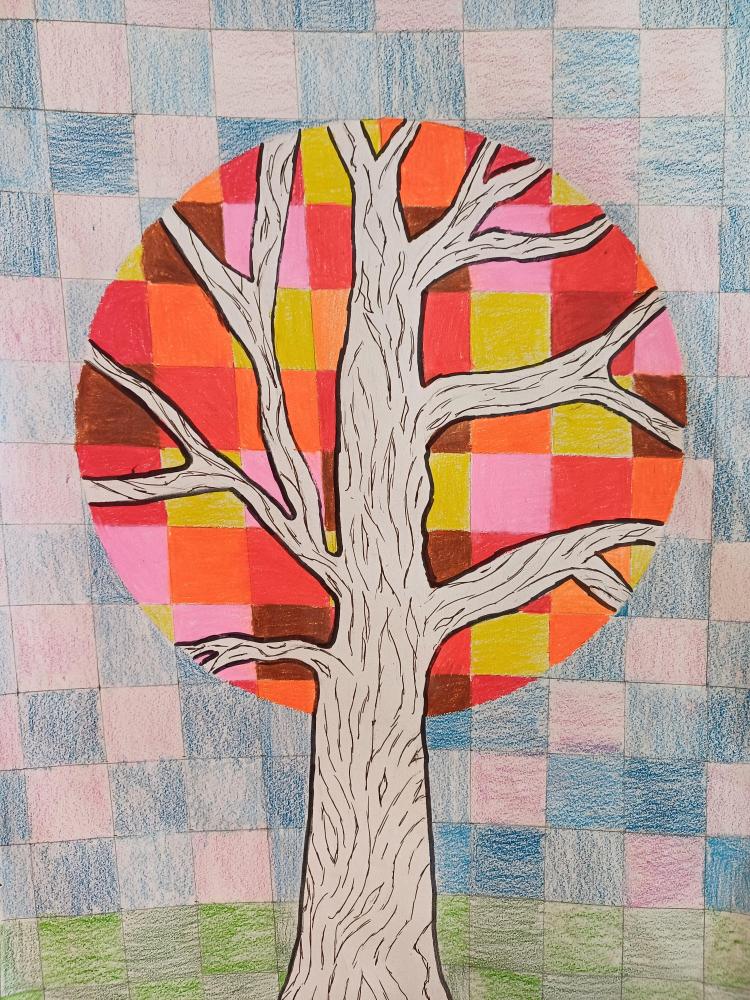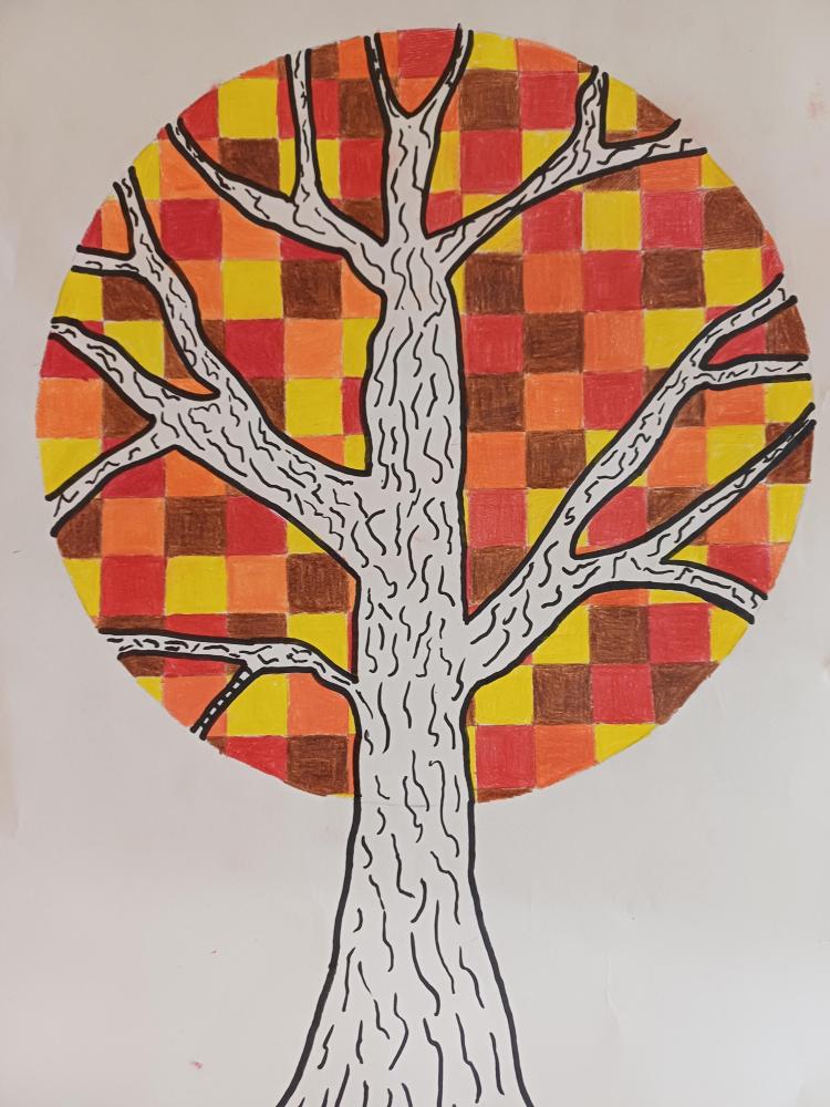 Dort, wo sonst die Blätter wären, sieht man jetzt nur noch Quadrate in Herbsttönen. Zum Kontrast dazu noch einen Schwarz-Weiß stilisierten Stamm und fertig ist das abstrakte Herbstbild.