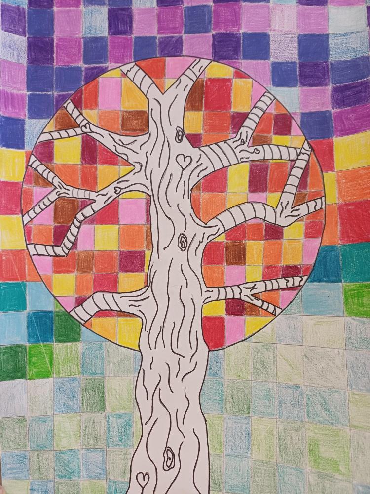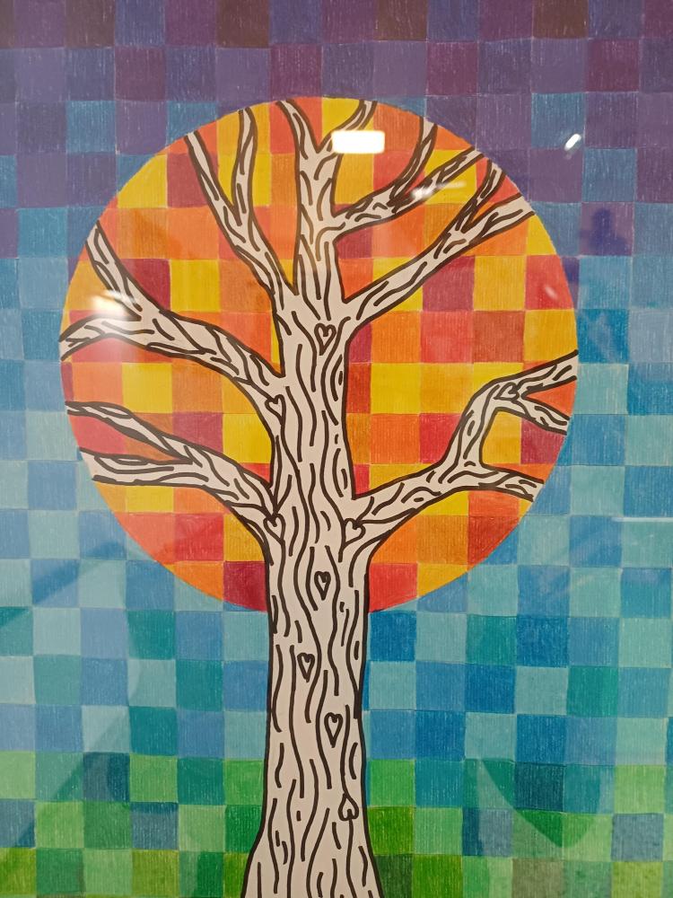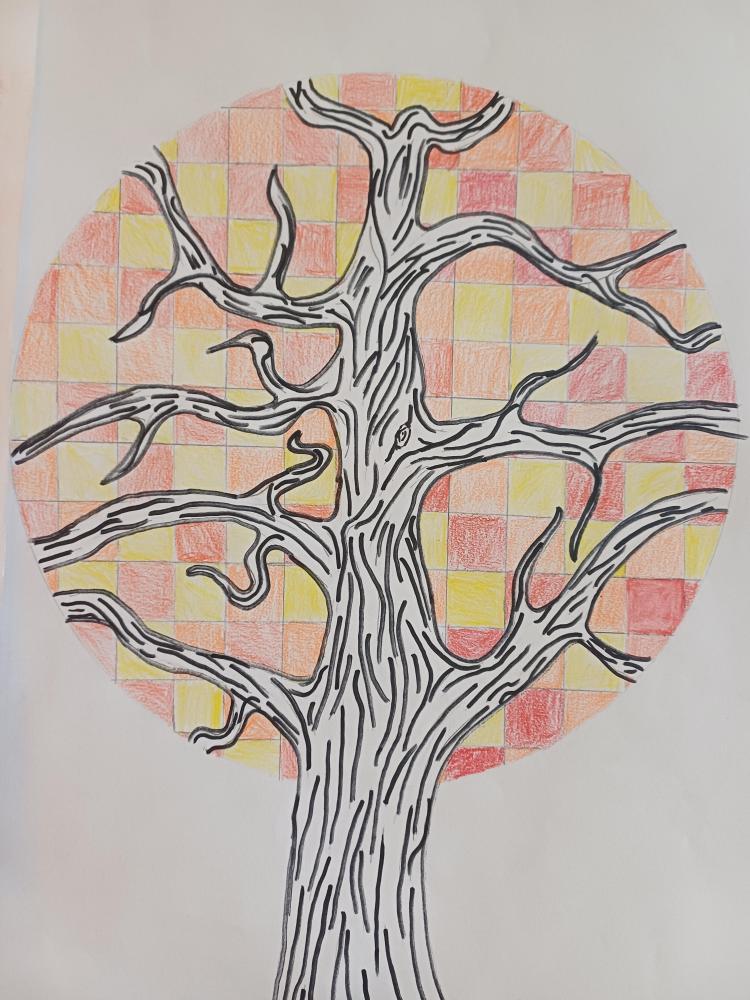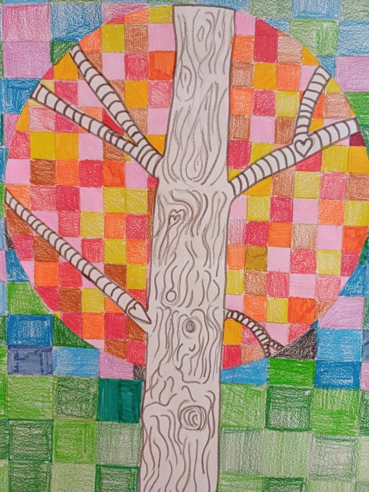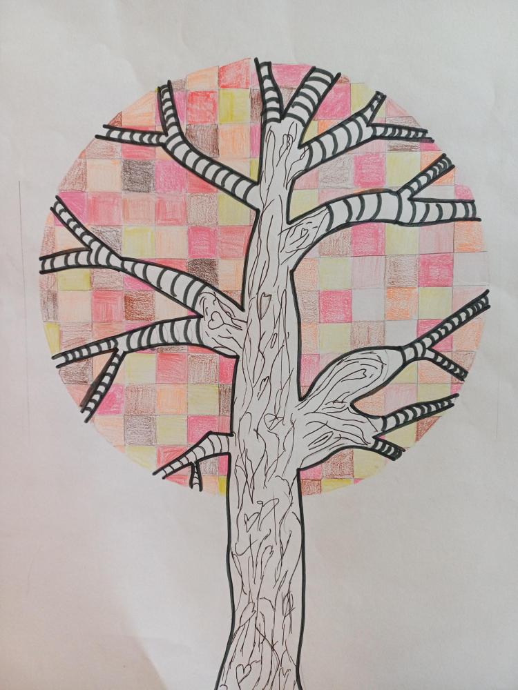 Dort, wo sonst die Blätter wären, sieht man jetzt nur noch Quadrate in Herbsttönen. Zum Kontrast dazu noch einen Schwarz-Weiß stilisierten Stamm und fertig ist das abstrakte Herbstbild.